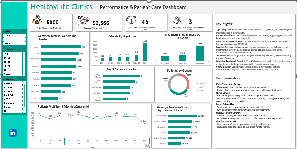 - This project successfully transformed raw patient data into a meaningful analysis for HealthyLife Clinics using Excel tools.